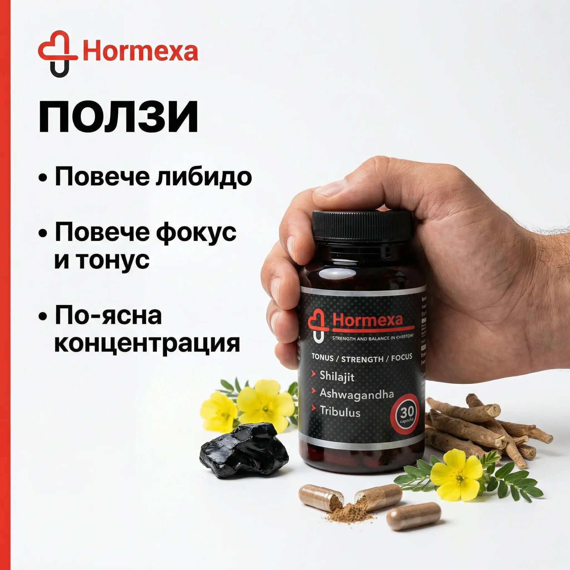 Vei observa singur energia pe care o simți din primele zile – combinația de shilajit, ashwagandha și tribulus susține rezistența, echilibrul hormonal și forța masculină. Mai puțin stres, mai mult tonus, o recuperare mai bună și o vitalitate reală în fiecare zi. O formulă concepută să funcționeze, nu doar să promită.